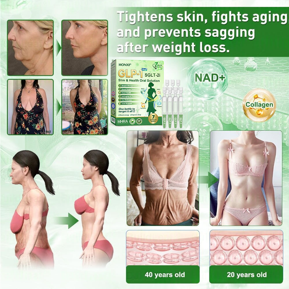 Post-Weight Loss Skin Care: After rapid weight loss, skin often becomes loose, saggy, and less elastic. ๐ฏ๐๐๐๐ยฎย has specially addedย Collagen Peptidesย and collagen-boosting factors to the formula. These key ingredients stimulate collagen and elastin synthesis, helping the skin regain firmness and thickness. They also smooth fine lines, reduce sagging, and restore a youthful, healthy glow. This ensures you not only lose weight successfully but also maintain a toned, youthful physiqueโavoiding the problem of โlooking older after slimming down.โย Weight loss and rejuvenation are achieved simultaneously.