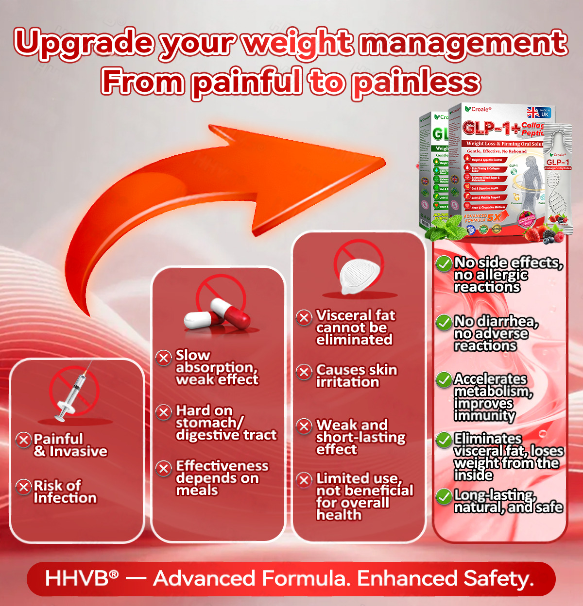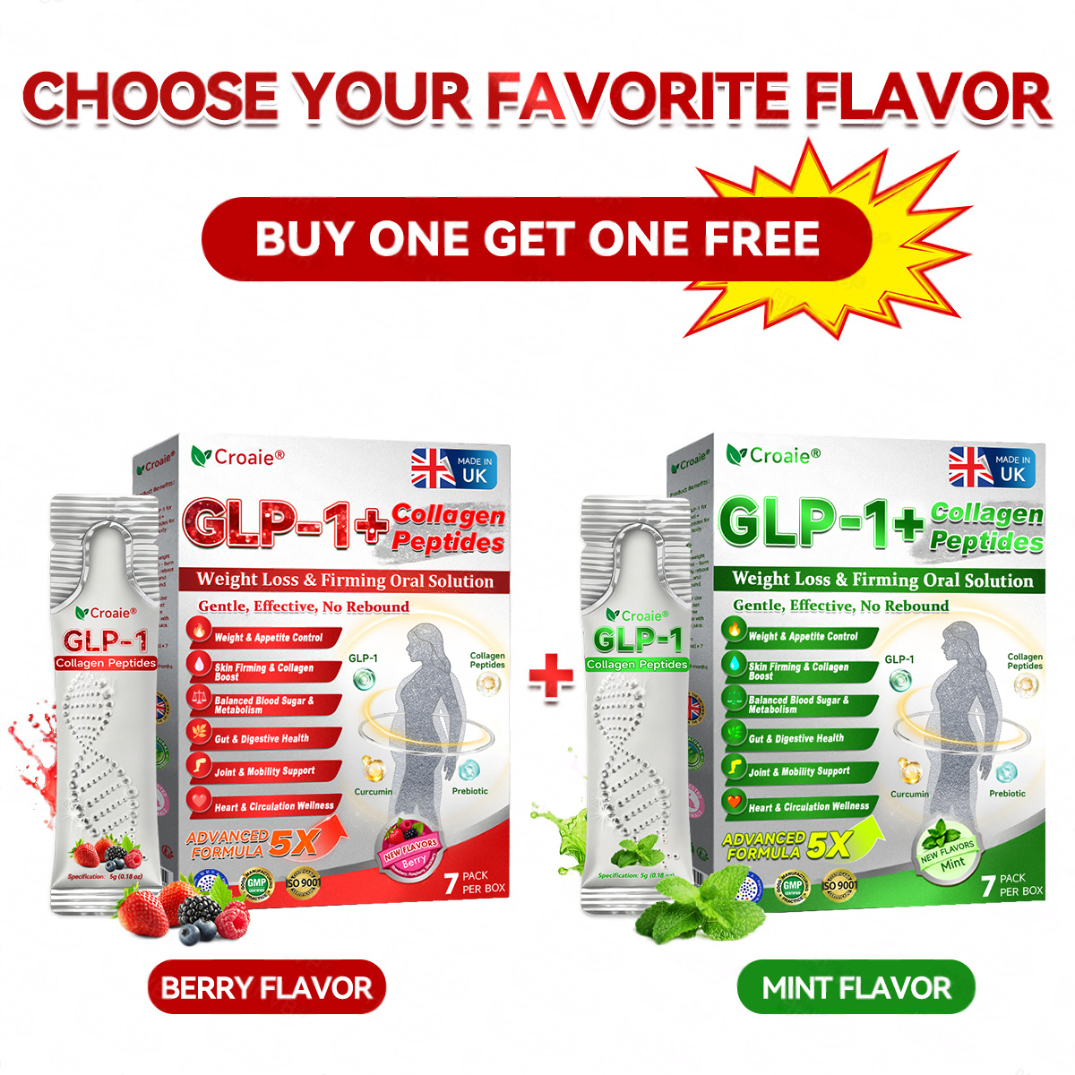 CroaieÂŽGLP-1+Collagen Peptides Weight Loss&Firming Oral Solution Developed by an international team of metabolic and endocrinology experts, the GLP-1 + Collagen Peptides Oral Solution represents a groundbreaking synergy in weight management and skin regeneration.GLP-1 technology precisely targets the bodyâs metabolic center to regulate appetite, accelerate fat breakdown, and restore energy balance. Meanwhile, Collagen Peptides work deep within the dermis to repair structural loss caused by fat reduction, rebuilding the skinâs support network and visibly improving firmness and elasticity.Clinical studies demonstrate that this dual-action formula delivers measurable resultsâreducing body fat while enhancing skin tightness within a short period of use. It offers a scientifically validated solution for sustainable health, firmness, and long-lasting vitality.