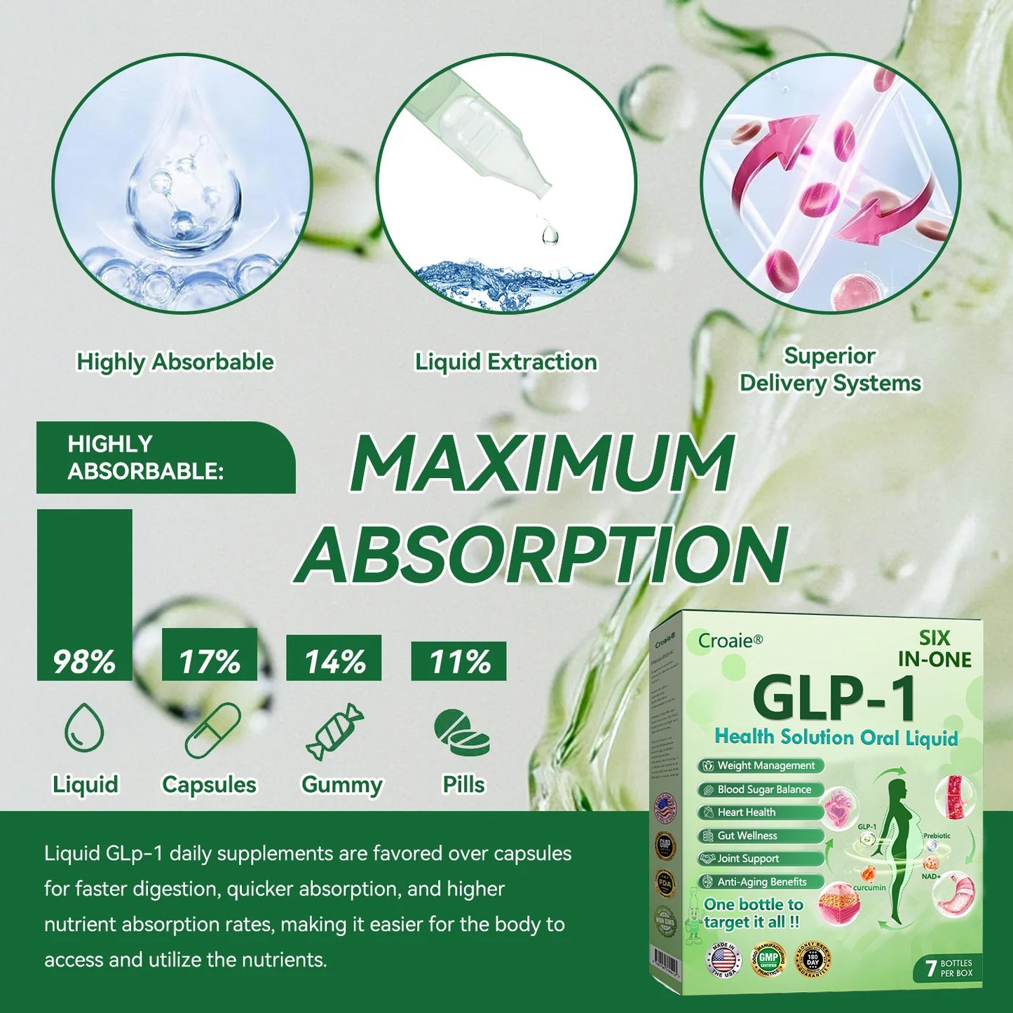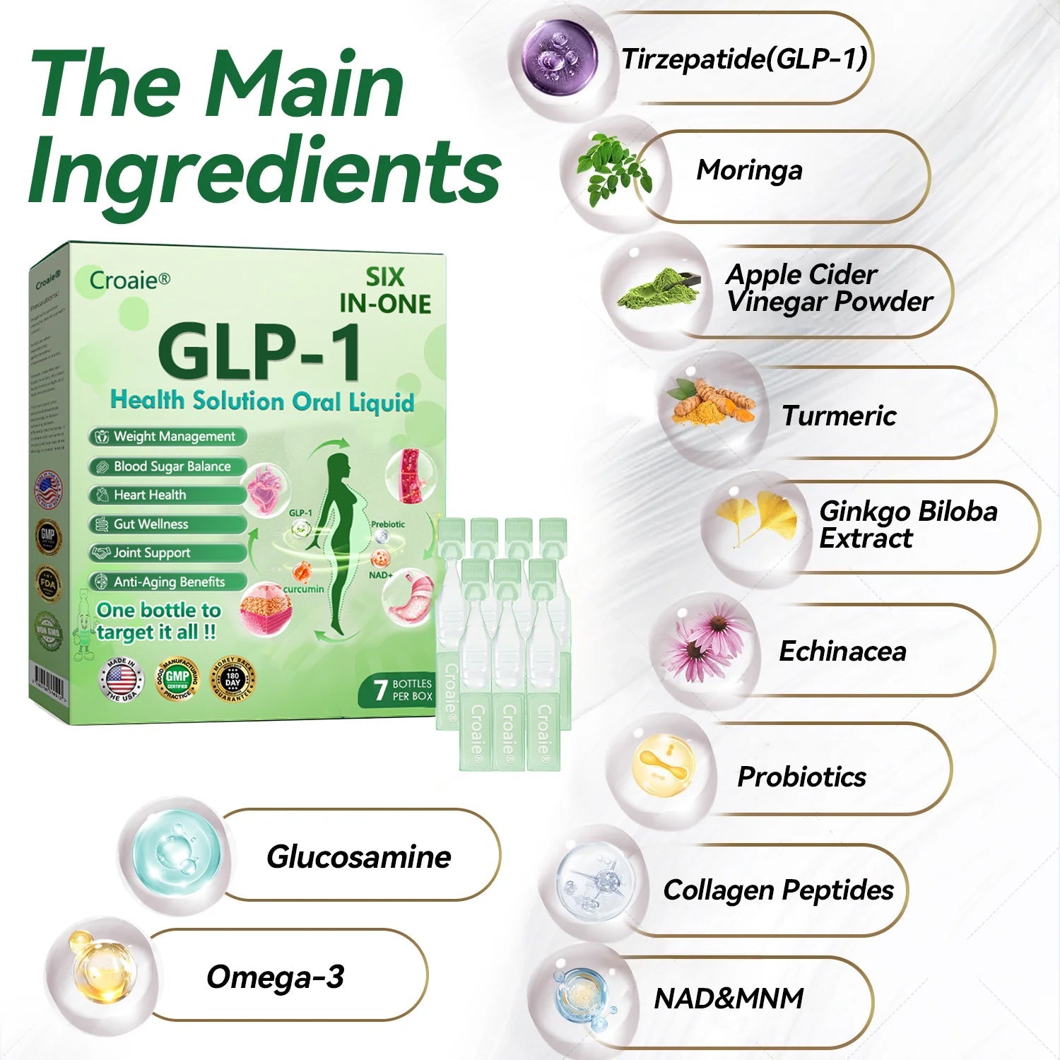 Croaieยฎ ๐ฎ๐ณ๐ท-1 ๐บ๐ข๐ฑ ๐ข๐ง-๐ถ๐ง๐ ๐ฏ๐๐๐๐๐ ๐บ๐๐๐๐๐๐๐ ๐ถ๐๐๐ ๐ณ๐๐๐๐๐ was developed by a team of over 30 experts in international endocrinology and diabetology after more than 3 years of research. It combines Meglutide with powerful herbal ingredients to boost metabolism, accelerate fat burning, and support digestive and lymphatic health. To further support the body during weight loss, the formula also includesย Collagen Peptides, which stimulate the bodyโs collagen synthesis to enhance skin firmness, improve sagging and fine lines, and help reduce skin laxity caused by rapid weight loss. This oral solution has been approved by the U.S. Food and Drug Administration (FDA) for its safety and efficacy, offering a scientifically backed solution for weight loss and overall wellness.
